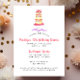 Flower Cake Pink Stripe Party Invitation