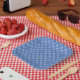 Flower Checkered Pattern No. 01 - Light Blue Paper Plates