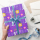 Modern text and flower design personalized age birthday girls gift wrapping paper, featuring graphic flowers and your own short name in a purple, pink, white, and yellow. Personalize with your own choice of name (please note not all names will fit due to the nature of the font) and age, currently reads Avonlea 17, other name lengths are available if you need assistance contact me, happy to post one for your name. A great way to give a personalized touch to birthday gifts. Uniquely designed by Sarah Trett for www.mylittleeden.com