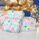 Modern text and flower design personalized age birthday girls gift wrapping paper, featuring graphic flowers and your own five letter name in aqua, pink, white and yellow. Personalize with your own name (please note not all names will fit due to the nature of the font) and age, currently reads Daisy 8, other name lengths are available, if you need assistance please contact me, happy to post one for your name. A great way to give a personalized touch to birthday gifts. Uniquely designed by Sarah Trett.