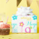 Modern text and flower design personalized age birthday girls gift wrapping paper, featuring graphic flowers and your own four letter name in aqua, pink, white and yellow. Personalize with your own name (please note not all names will fit due to the nature of the font) and single digit kids age, currently reads Maya 9, other name lengths are available, if you need assistance please contact me, happy to post one for your name. A great way to give a personalized touch to birthday gifts. Uniquely designed by Sarah Trett.