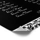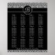 A wedding reception seating chart is an elegant way to direct your guests to their tables instead of using place cards. You can also keep your seating chart as a momento of your wedding and the people who celebrated with you. This monogrammed wedding seating chart feature a lovely black and white floral damask pattern with an initial in a black circle. It is designed to fit in a standard frame and comes in a variety of sizes including: 11x14, 15x19 and 23x29. You can supply your own frame, or order your wedding seating chart with a frame included. We also offer a square version of this wedding seating assignment chart.