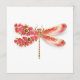 Artistically drawn, gold, jeweled dragonfly with red and wings decorated with red, blooming, jeweled Japanese cherry on white background. Gold Dragonfly.