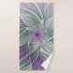 Flower Dream, Abstract Purple Green Fractal Art Bath Towel