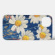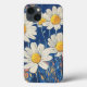 Bright white and yellow daisies pop against a deeply textured blue background with hints of warm undertones. This graphic floral piece combines the freshness of daisies with a bold, almost sculptural texture.