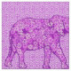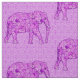 Mixed media digital graphic of an elephant against an arabesque tiled background fabric - shades of lavender, orchid and amethyst purple