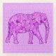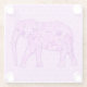 Mixed media digital graphic of an elephant against an arabesque tiled background glass coaster - shades of lavender, orchid and amethyst purple