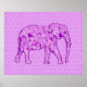 Mixed media digital graphic of an elephant against an arabesque tiled background - shades of lavender, orchid and amethyst purple