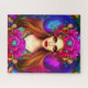 This is a beautiful puzzle featuring a flower fairy queen in vibrant color of pinks, purples and blues.