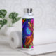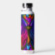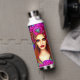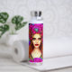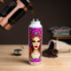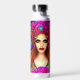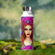 This is a beautiful water bottle featuring a flower fairy queen in vibrant color of pinks, purples and blues.