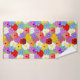 This towel set has a purple washcloth, a lighter purple hand towel, and a bath towel with a Spring design of scattered roses, pansies, daisies, and periwinkles.