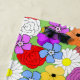 This beach towel has a Spring design of scattered roses, pansies, daisies, and periwinkles.