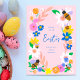 Adorable bee and flower garden design in bright colors that's perfect for an Easter greeting card.