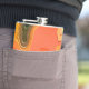 Well made flask, a little better than I had expected. Flask came in clear plastic box which gave it a nice presentation when I took it out of the zazzle packaging. Image is not printed on flask but on sticker. Don't know how this will hold up I haven't used it yet. This would make a Great gift! I plan to purchase more for friends! Cheers. I thought a little brighter than computer. Very crisp, writing wasn't