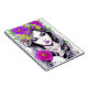 A black and white line drawing of a beautiful girl covered with colorful flowers