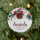 Flower Girl Personalized Burgundy Roses Christmas Ceramic Ornament. Personalize with your custom information on both front and back.