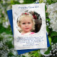 Say thank you to the flower girl with a pretty card containing her picture! White floral background, with navy blue, fun text and a sample message. Her photo is in a brushstroke, round frame, which makes the edges uneven. Add a wedding photo of the Flower Girl. Reverse is solid dark blue. Change colors using the design tool.