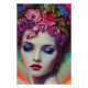 A beautiful ai-generated art nouveau portrait of a woman in a hat made of flowers, surrounded by a rainbow aura. It would be a beautiful addition to a boudoir or a girl's bedroom.