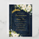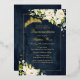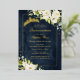 Flower Golden Butterfly Navy Quinceanera Foil Invitation