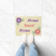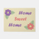 Make your doorstep the prettiest on the block with a custom doormat. This mat shows two flowers in corners of the mat with leaves behind them. A nice message of Home Sweet Home is placed in the center with a soft yellow background.