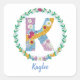 Flower Letters Initial "K" with Personalized name Square Sticker