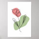 A single flower stem line art with deep pink and green abstract design to display on any wall of your house.