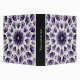 Flower mandala binder with a kaleidoscopic pattern created from a watercolor and ink drawing of an abstract lotus flower in blue, violet and black, and customizable text on the spine.
