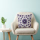 Flower mandala pillow with a kaleidoscopic pattern created from a watercolor and ink drawing of an abstract lotus flower in blue, violet and black.