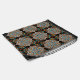 The repeating circular forms with intricate inner detailing make this pattern geometric and organic with flower mandalas and tiled patterns. The subtle color accents bring in warmth without overwhelming the flower mandalas in brown, tan, turquoise, orange, white and black.