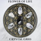 Flower of Life Golden Crystal Grid on Black Cosmos. Flower of Life Golden Crystal Grid is 12x12". This is the ancient sacred geometry of the Flower of Life used for Crystal Grids to heal and charge with life force energy in order to manifest change, love, protection abundance, and more. Used in Reiki and Chakra healing. This crystal grid tempered glass can move energy through the glass. The glass crystal grid is stable and makes it easy to move around while crystals are still on it. Great for altars too.