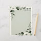 White Flowers with green leaves and stems hold the corners of a sage-green center space on this beautiful and elegant stationery. Perfect for correspondence, invitations, flyers, and more.