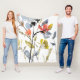 Flower Overlay - Watercolor Flowers & Stems Fleece Blanket