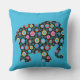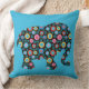 Flower Pattern Elephant on Blue Throw Pillow