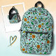 Flower Pattern orange Swirl Berry on Turquoise - Printed Backpack