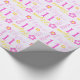 Modern text and flower design personalized age birthday girls gift wrapping paper, featuring graphic flowers and your own six letter name in lilac, pink, white and yellow. Personalize with your own short name (please note not all names will fit due to the nature of the font) and age, currently reads Elysia 11, other name lengths are available, if you need assistance contact me, happy to post one for your name. A great way to give a personalized touch to birthday gifts. Uniquely designed by Sarah Trett.