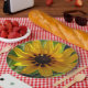 Yellow flower photo paper plates.
