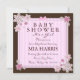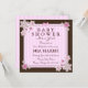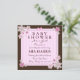 This Modern customizable baby shower Invitation features pink flowers on a brown background. Customize it by adding your details in the font of your choice!