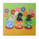 Flower Pot Labrador Puppies Ceramic Tile. Colorful and cute Labrador Retriever Puppy Painting design with pretty daisies. Black Labrador, Yellow Labrador, Chocolate Labrador Puppies are all painted in the picture. The puppies are sitting in the colorful flower pots with orange and pink and red flowers. Cute heart patterns on the flower pots. Whimsical Labrador Painting painted by Naomi Ochiai from Japan. Great fun gifts for dog lovers who love Labradors!