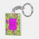Flower Power Bright Green and Pink Monogrammed Keychain
