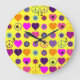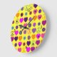 Flower Power Heart Peace Pattern + your backgr. Large Clock