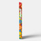 Different colored flowers arranged in a row against a different colored background in the color of the 70s, the hippies.