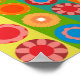 Different colored flowers arranged in a row against a different colored background in the color of the 70s, the hippies.