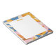 Colorful intersecting shapes create a retro floral border for this notepad.
