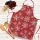 This red and white floral apron has a retro 60s/ 70s vibe that features white outlined daisy-like flowers on a vibrant red background.