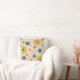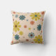 Flower Power Retro 60s Pattern Mustard Blue Orange Throw Pillow
