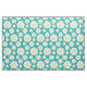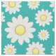 If fabric featuring scattered daisy flowers are a blue green background.