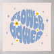 Check out this cute retro floral design featuring a groovy font and smiling daisies.