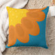 Flower power abstract sunflower throw pillow to accessorize your bed or couch! Mid-century modern hippy inspired style with bright blue and a color pop of mustard yellow and orange to brighten your space.