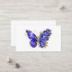 Jewelry, blue, sapphire, sparkling flower butterfly with wing decorated with blue, precious flowers with gold leaves on white background.