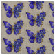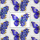 Jewelry, blue, sapphire, sparkling flower butterfly with wing decorated with blue, precious flowers with gold leaves on white background.